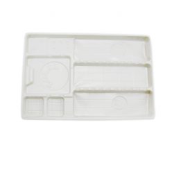 سینی یکبارمصرف که عکس آن را مشاهده میکنید قابل استفاده برای مطبها و دنداپزشکیها میباشد. سینی یکبارمصرف از جنس پلی استایرن و کریستال است. این سینی در ابعاد 28*18/5 سانتی متر بوده و دارای 50 عدد در هر بسته و در هر کارتن 30 بسته میباشد.